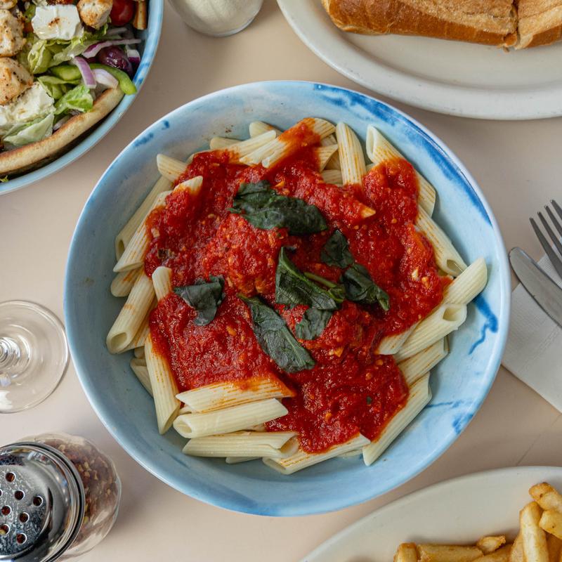 Ziti with mozzarella and tomato sauce baked to perfection in our oven