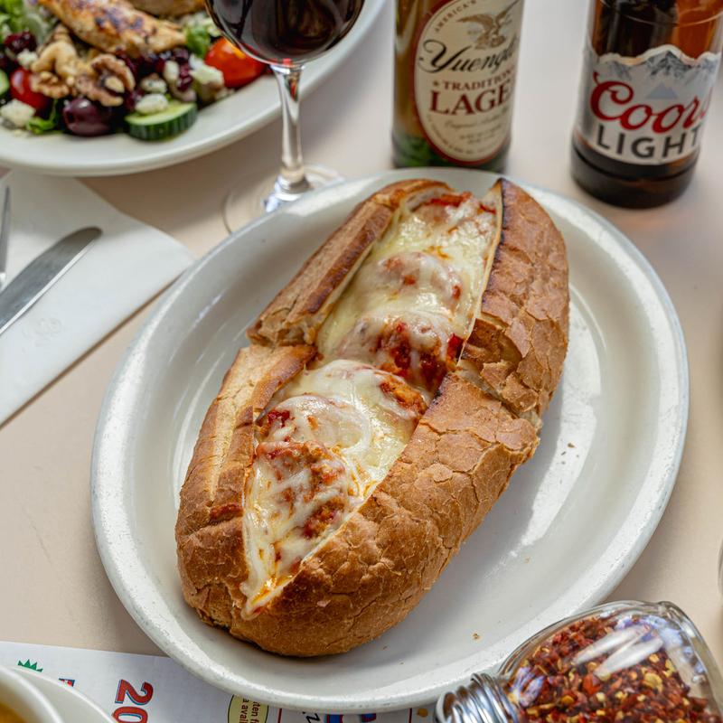 Stacked layers of pasta packed with meat and cheese, covered in red sauce. Pro tip: Go for the crispy edge pieces. Supersized for your party.