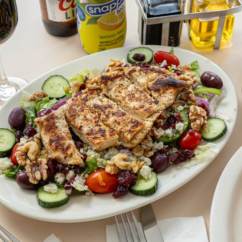 Lettuce, onions, carrots, dried cranberries, honey roasted walnuts & gorgonzola cheese.
