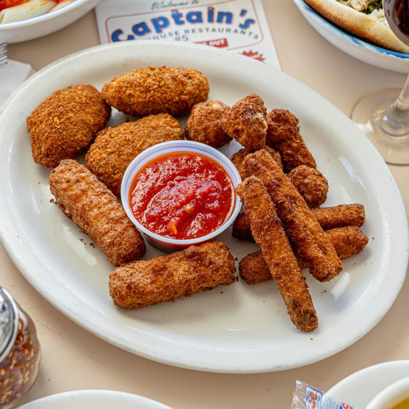 Breaded eggplant topped with mozzarella cheese & tomato sauce.